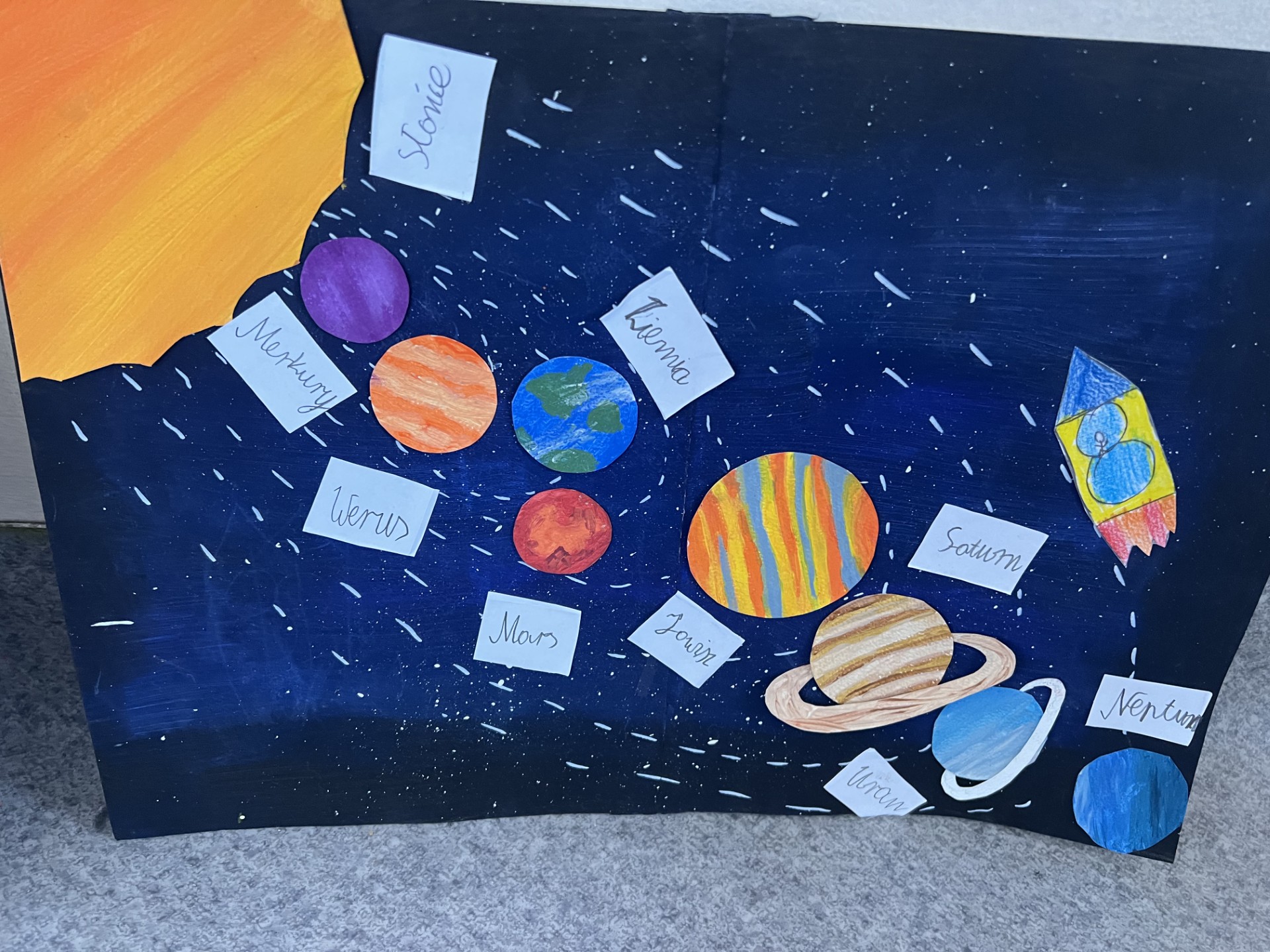Podczas zajęć warsztatowych uczniowie klasy 2a poznawali i utrwalali planety Układu Słonecznego. Samodzielnie tworzyli modele planet według własnego pomysłu, prawidłowo umieszczali je na orbitach oraz sprawdzali, jak powstaje dzień i noc, utrwalali wiedzę na temat Kosmosu.